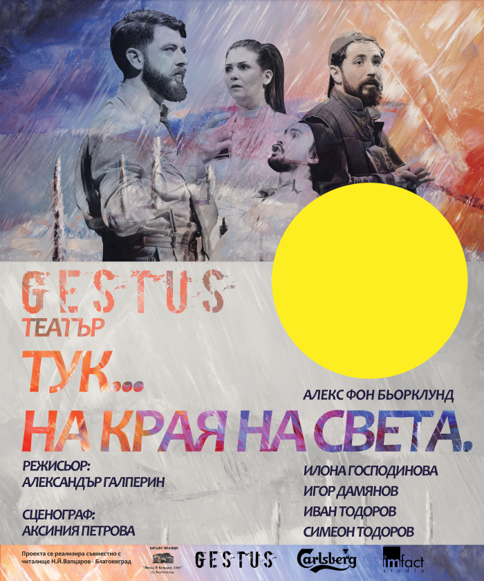 Авторът на пиесата „Тук… на края на света“ – Александър Сергеев, ползващ ексцентричния псевдоним Алекс фон Бьорклунд, все още не е познат на българския зрител и нашият съвместен проект ще е първия му опит да стъпи на българска сцена. Любопитството ми откри в тази пиеса най-актуалните неща, пряко касаещи днешната младеж и това са – ТЕМАТА, върху която авторът построява своя сюжет и КОНФЛИКТЪТ, който изследва.