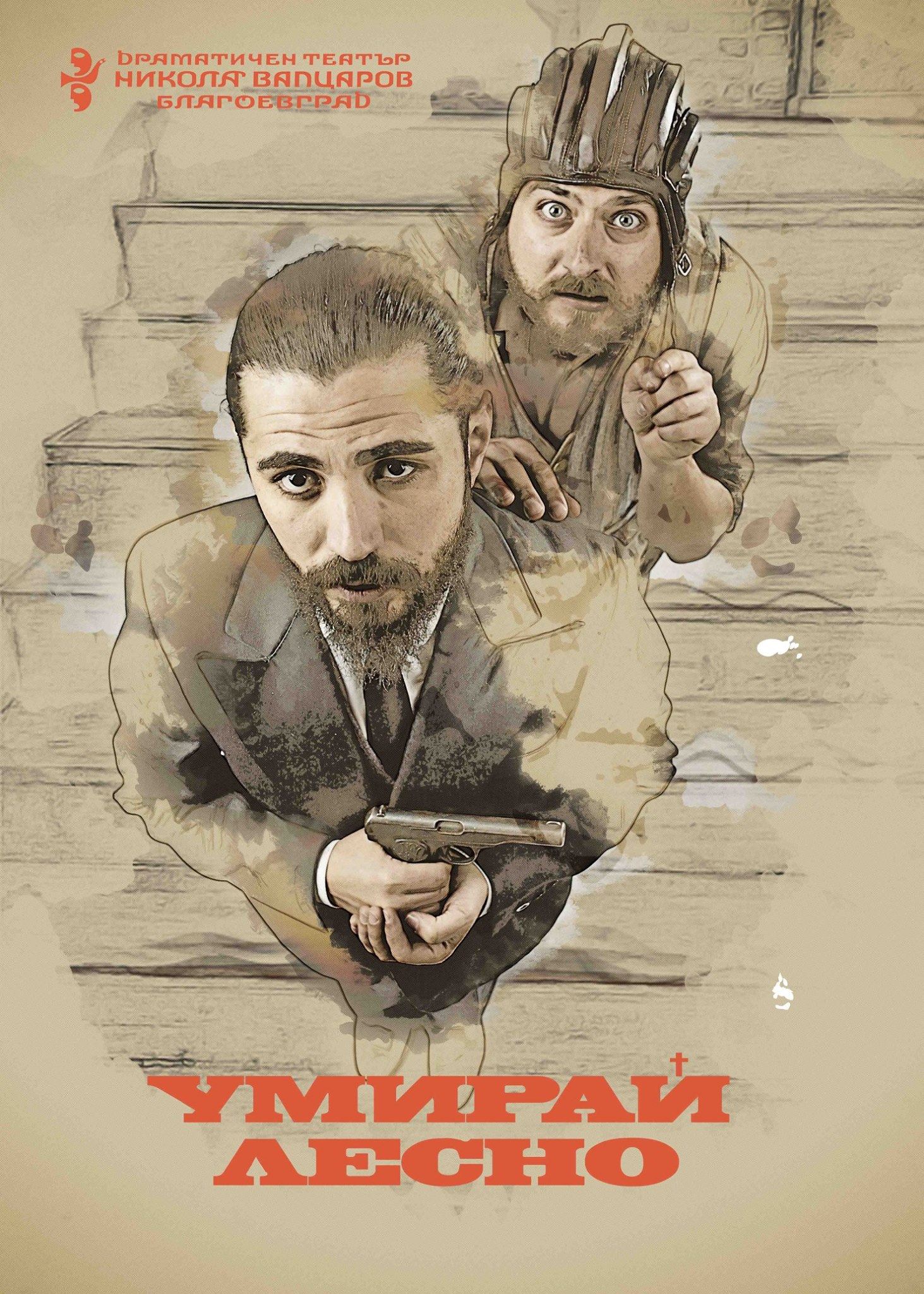 След като гледат представлението на Тодор Колев и Вальо Танев в Театър 199, Игор Дамянов и Иван Тодоров дълго време търсят текста на Мате Матишич. В началото на 2015 година, по тяхно предложение, ръководството на театъра залага в репертоара си заглавието. Така стартират и репетициите, а успехът се отчетен още в премиерните дни. За една година представлението е гледано от повече от 2 000 зрителя. Веднага след премиерата, то бе селектирано за международните фестивали „Тара-ра-бумбия” – Благоевград 2015, Международен фестивал на изкуствата „Магията на вятъра” – Сливен и Фестивал на изкуствата „Арт Поток Царево – Хасиенда Лозенец“. След фестивалните участия, по официална покана към екипа на „Умирай лесно!?”, представлението пътува до Виница, Македония.Хърватският текст представя съдбата на емигранта. Темата е изключително популярна – „типично балканския манталитет – да изиграеш системата и то западната система”.„Изключително талантлива балканска пиеса. Ние се опитахме тя да зазвучи актуална за всички балканци, за всички земи, социални и етнически групи от Балканския полуостров, защото скоро няма да се освободим от себе си, от манталитета си, от тази си тежест наречена Балкански манталитет.” Огнян Спиров, режисьор на „Умирай лесно!?”Човек го заболява сърцето и си мисли: „Господи, каква трагедия!“.Игор Дамянов влиза и излиза от един ковчег, капризничи, че „сетният дом“ не е тапициран и дори му е малко тесничък. Иван Тодоров е негов съквартирант, с когото слушат призива на правителството след войната емигрантите да се завърнат по домовете си…Какво може да хрумне на тези гастарбайтери, запътили се към родината, но, уви, без документи?!Жесток спектакъл.И истински.Свирепа комедия за най- абсурдните и най- човешките реакции.Представлението не се препоръчва за лица под 16 години!